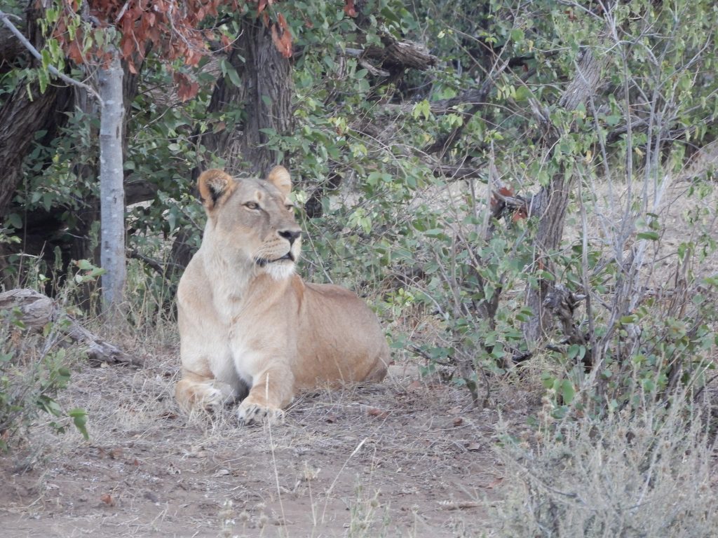 Nun wieder Selbstfahrerinnen, erreichen wir nach ca. 4 Stunden unser nächstes Ziel, das Mashatu Main Camp im Tuli Block in Botswana. Das Gebiet liegt direkt hinter der Grenze zu Südafrika und wird vom Fluss Limpopo durchzogen. Nach der Erledigung der Grenzformalitäten fahren wir per Transfer zur Lodge. Das Reservat ist nicht nur Heimat von Elefanten, Kudus, Giraffen, Löwen und vielen anderen Tierarten, sondern bietet Aktivurlaubern auch die Möglichkeit zu geführten Mountainbike-Touren und Reitsafaris. Wir sind gespannt, was uns hier die nächsten zwei Tage erwartet. Das Camp ist mit 14 Chalets sehr großzügig angelegt. Die Mahlzeiten kann der Gast wahlweise im offenen Restaurantbereich oder auf einem großes Panoramadeck einnehmen. Zwei Pools laden zum Entspannen ein. Auf der Spätpirsch zeigt unser Guide Spike uns das Reservat mit seiner Tierwelt. Wir sehen Elefanten und Warzenschweine und auch eine Löwenfamilie kommt nach und nach zum Vorschein. Mama Löwe macht den Anfang und weist ihre Kinder an, es ihr nachzumachen. Eine einzigartige Szene!