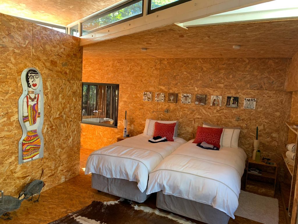 Schon während der Fahrt nehmen wir die Veränderung der Natur wahr. Eine Vielzahl von Baumarten wie Mopanes und Baobabs begegnen uns. Nach etwa 5 Stunden kommen wir am Zentralparkplatz der Lodge an, wo unser Guide bereits auf uns wartet. Meine unausgesprochene Frage, warum wir denn abgeholt werden und nicht selbst zur Lodge fahren können, beantwortet sich später von selbst. Der Weg zur Sigurwana Lodge ist nicht nur holprig und steinig, sondern teils auch sehr steil und schmal. Da sind wir froh, dass wir uns nun zurücklehnen können. Dawn erweist sich schnell als eine sehr sympathische Rangerin, deren Begeisterung ansteckend ist. Bei unserer Ankunft werden wir vom gesamten Personal der Lodge freundlich mit einem afrikanischen Lied begrüßt. Auch die herzliche Gastfreundschaft des Inhaberehepaars Liesel und Neil lernen wir schnell zu schätzen. Gemeinsam mit Sabine und Frank (zwei Iwanowski´s-Kunden), Dawn und ihrem Lebensgefährten Daniel (Manager) sowie Liesel und Neil sitzen wir auf der Veranda und verspeisen ein spätes, aber leckeres Mittagessen. Ich genieße die Ruhe und Abgeschiedenheit. Dies ist wirklich eine Unterkunft abseits des Mainstreams, eine kleine und intime Lodge mit vier rustikalen Chalets, einem Luxus-Safarizelt und dem ganz neuen Angebot Ystervark: Diese originelle und kunstvoll gestaltete Unterkunft in einem ausgebauten Überseecontainer ist unser Domizil für die nächsten 2 Nächte. Manchmal verlaufen sich im Lodgebereich auch Tiere wie Impalas und Affen.
