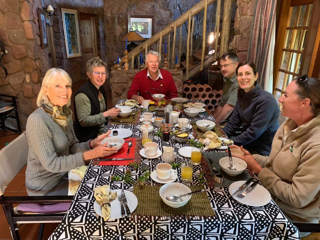 Am nächsten Tag geht es mit Dawn auf eine Naturfahrt, und während sie uns ganz viel über die Tier-und Pflanzenwelt erzählt, springt ihre Euphorie schnell auf uns Gäste über. Nachmittags unternehmen wir noch einen Ausflug zu einem Felsenpool und wandern weiter bis zur Klippe, wo sich uns ein grandioser Ausblick bietet. Auch in die Malereien der Buschmänner werden wir bei einer kleinen Wanderung eingewiesen. Am Abend gibt es wieder ein tolles afrikanisches Essen, diesmal im Boma serviert. Die Atmosphäre in uns