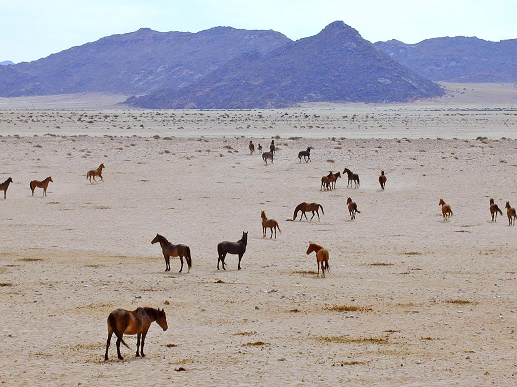 - Die Pferde stammen aus dem Gestüt Duwisib, wo der Schlossherr Hansheinrich von Wolff vor gut 100 Jahren eine große Pferdezucht aufbauen wollte. Sein Areal hatte damals keine Zäune, und so konnten sich die Tiere selbst die besten Weiden suchen. Einige Pferde mögen in die Namib gelaufen und hier geblieben sein.