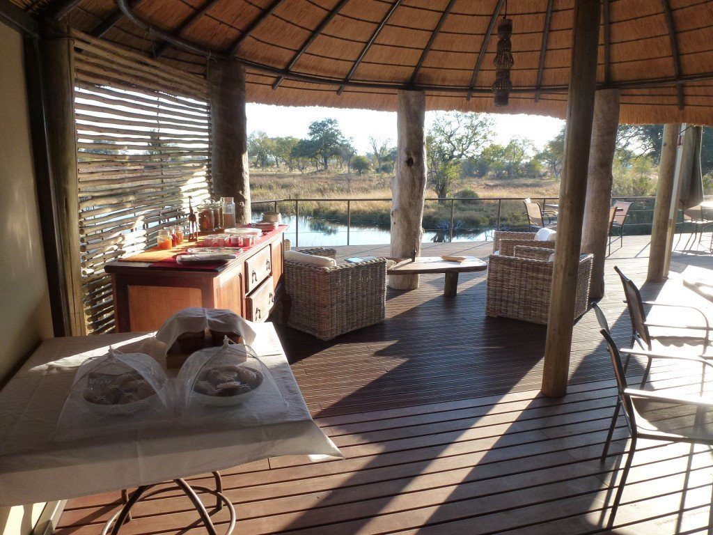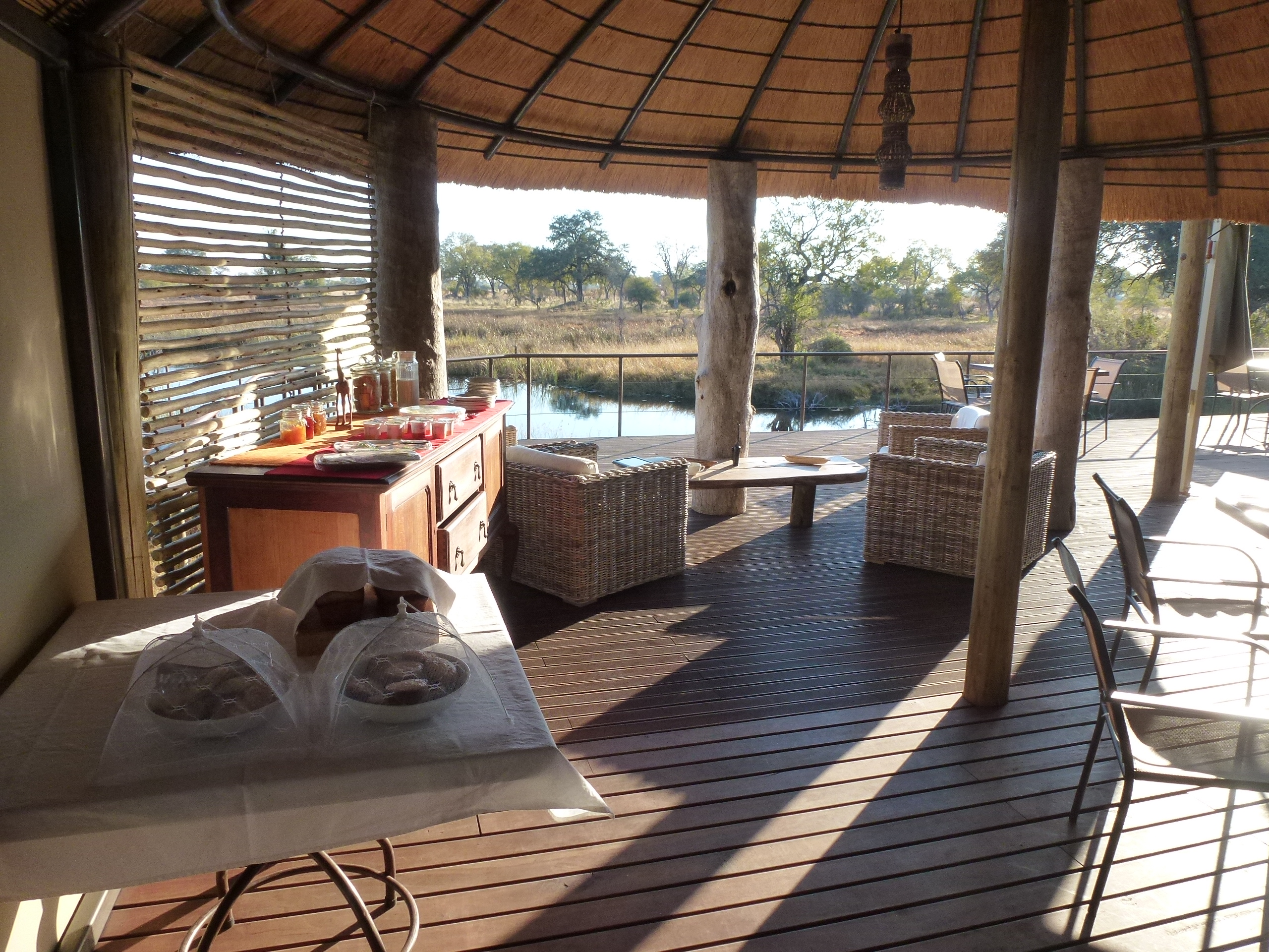 Am Haupthaus sitzt man zu den Mahlzeiten oder zu einem entspannten Sundowner auf schönen Holzterrassen mit Feuerstelle und überblickt das Wasser- und Sumpfgebiet, das von hohen Papyrus-Dickichten umsäumt wird. Die Besitzer der Lodge sind Italiener, kein Wunder, dass man dies dem Essen und dem Lebensgefühl auf der Lodge anmerkt – Bella Italia lässt grüßen!