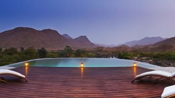 Die Gebäude sind zum Fluss Kunene hin ausgerichtet, was Ihnen eine fast paradiesische Atmosphäre anbietet. Highlight der Okahirongo ist gewiss der Swimmingpool mit großzügigem Sonnendeck, quasi die Agora der Lodge. Relaxen Sie hier bei entspannenden Bädern, genießen Sie Ruhe und Abgeschiedenheit. Das Personal ist zuvorkommend und verwöhnt Sie kulinarisch mit edler afrikanisch-italienischer Küche und südafrikanischen Weinen.