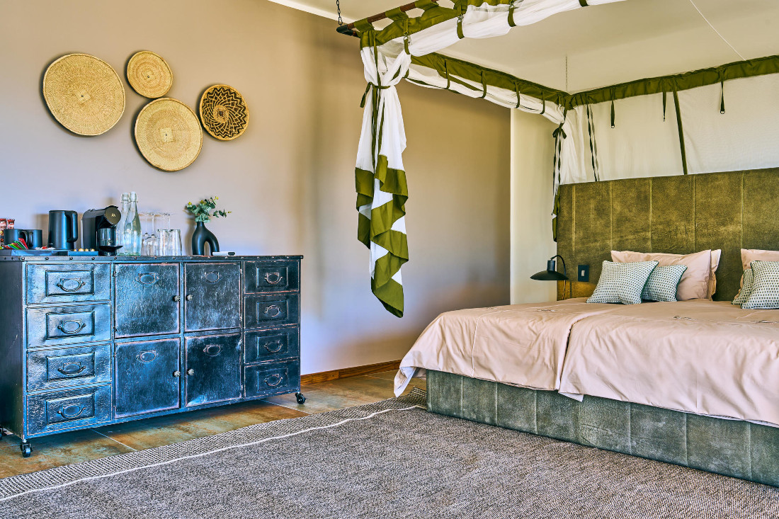 Die 2025 frisch renovierte Hohenstein Lodge verbindet stilvollen Komfort mit authentischem Namibia-Flair. Die Anlage verfügt über insgesamt 14 geschmackvoll eingerichtete Zimmer mit eigener Terrasse sowie zwei besondere Chalets mit einzigartigen Sternenbetten, die unvergessliche Nächte unter dem afrikanischen Himmel ermöglichen. Zusätzlich stehen zwei großzügige Double Chalets mit jeweils zwei Schlafzimmern und einem gemütlichen Wohnbereich zur Verfügung, ideal für Familien oder kleine Gruppen.