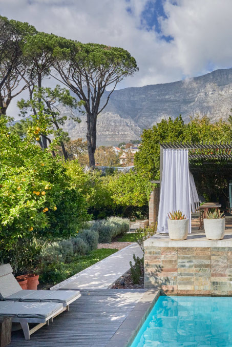 Mit nur acht großzügig gestalteten und individuell dekorierten Zimmern bietet das Hotel eine intime Atmosphäre und höchsten Komfort. Jedes Zimmer verfügt über komfortable Betten, kostenloses WLAN, LCD-TV, Safe sowie liebevolle Details wie Bademäntel und hochwertige Pflegeprodukte – ganz darauf ausgerichtet, den Gästen ein Gefühl von Wohlbefinden und Entspannung zu vermitteln. Die privaten Balkone oder Terrassen der Zimmer eröffnen wunderbare Ausblicke auf den gepflegten Garten, die umliegende Stadtlandschaft oder die majestätischen Berge Kapstadts. Das Hotel selbst ist eine versteckte Oase der Ruhe: In der grünen Gartenanlage mit Zitronenbäumen und einem Plunge-Pool können Gäste nach einem erlebnisreichen Tag entspannen, die Seele baumeln lassen und die warme Sonne Südafrikas genießen.