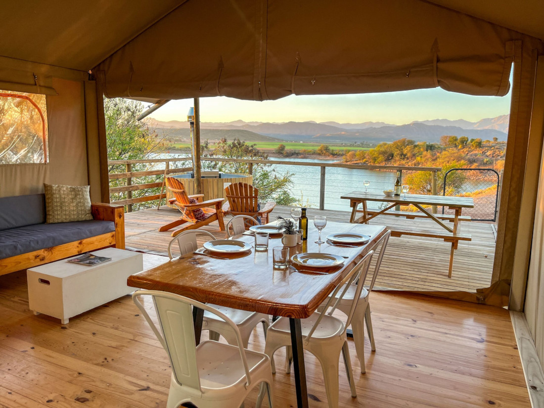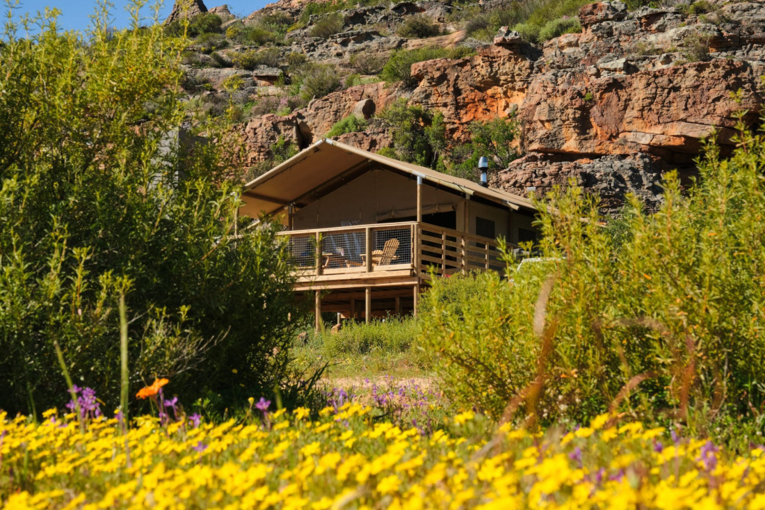 Von den Cederbergen setzen Sie Ihre Reise in Richtung Südosten fort, vorbei an sanften Landschaften, bis in das renommierte Weinanbaugebiet rund um Paarl und Wellington. Die Region ist bekannt für ihre malerischen Täler, historischen Weingüter und eindrucksvolle Bergkulissen. Ihre Unterkunft liegt am Ende eines idyllischen Sackgassentals nahe Wellington, am Fuße des beeindruckenden Bainskloof Passes. Eingebettet in das vielfach ausgezeichnete Weingut Doolhof, verbindet dieses Camp auf besondere Weise das authentische Farmgefühl mit der Eleganz einer der schönsten Weinregionen Südafrikas. Umgeben von der Groenberg-Bergkette und durchzogen vom Kromme River, erwartet Sie hier eine Atmosphäre vollkommener Ruhe. Das Camp besteht aus sechs exklusiven Boutique-Glamping-Zelten, die harmonisch zwischen Reben und Flussufer platziert wurden und ein intensives Natur- und Weinerlebnis ermöglichen. 2 Ü AfriCamps at Doolhof (o.ä.), Glamping-Zelt mit Bad/WC, nur Übernachtung